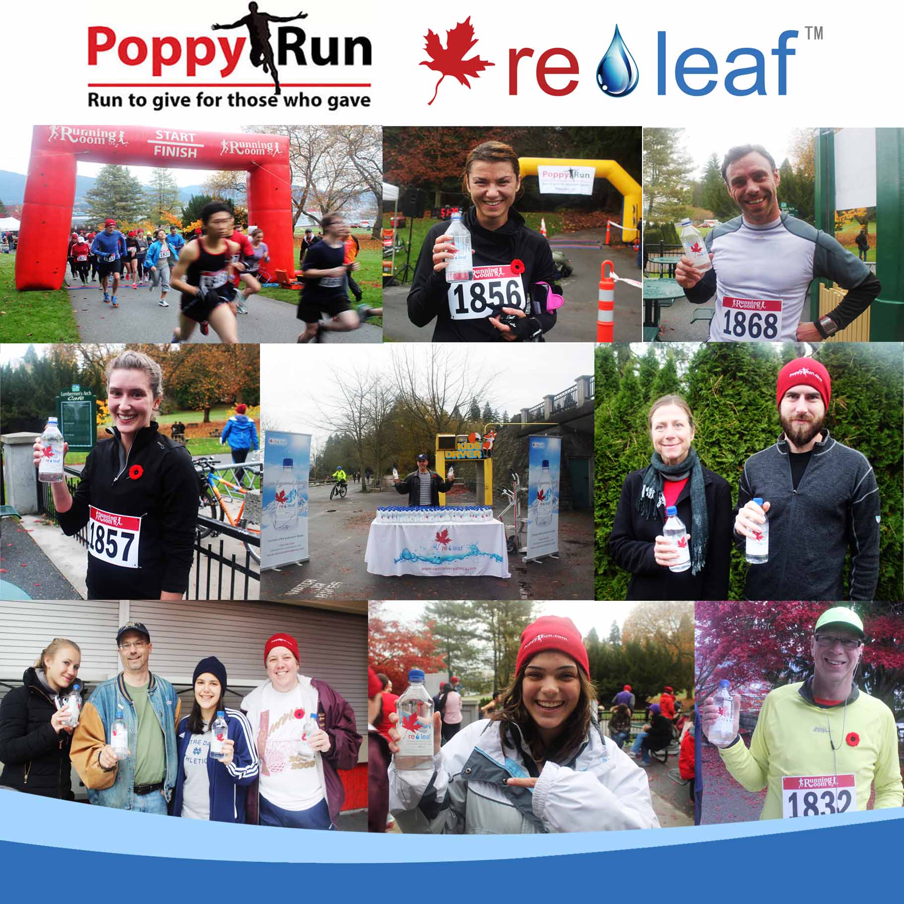 Vancouver Water Enterprises Co.,Ltd was an official sponsor for the Stanley Park Poppy Run . Vancouver Water supplied releaf; Canada's Ultra-premium water to all event participants. The Event was open to all and aimed to raise funds and awareness for those who gave service for today's peace and freedom, and for a better tomorrow.