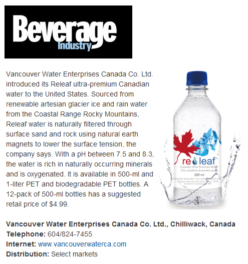 The American Beverage Industry Magazine Introduce Releaf Water to American Market on website.